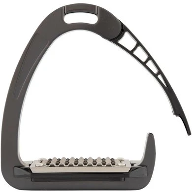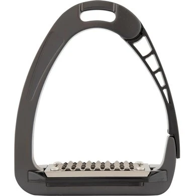 De brede roestvrijstalen antislip beugelzool met fijn profiel geeft de ruiter optimale grip en de afgeschuinde stijgbeugelriemophanging zorgt voor een goede beugelpositie, waardoor de voet in de juiste positie gehouden wordt. Dit geeft de ruiter meer stabiliteit en verbetert de beenligging. Per paar.