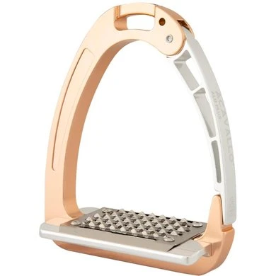 De brede roestvrijstalen antislip beugelzool heeft een grof profiel en extra lange gaten voor de afvoer van zand en water. De beugelzool is licht gekanteld, zodat de hak omlaag wordt gehouden. De afgeschuinde stijgbeugelriemophanging zorgt voor een goede beugelpositie, waardoor de voet in de juiste positie gehouden wordt. Dit geeft de ruiter meer stabiliteit en verbetert de beenligging. Per paar.