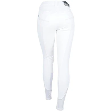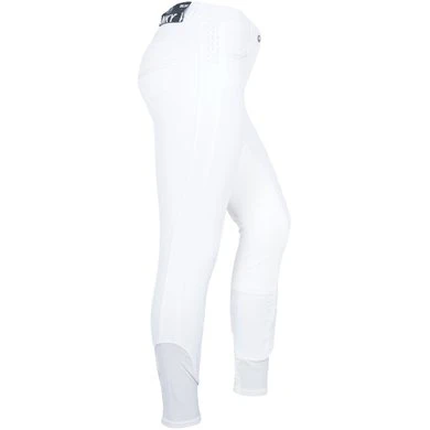 The breeches are made of 76% nylon and 24% elastane with an elasticated waistband with belt loops and a hook and bar fastening. It has a ¾ Clarino seat. The elastic lower leg inserts made of breathable mesh material ensure optimal comfort in the riding boots.