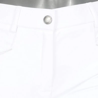 Both sides of the breeches feature a trim embellished with imitation diamonds at the top. The slit pockets at the front and patch pockets at the back are finished with decorative silver stitching. The embroidery at the front is the same colour as the breeches.