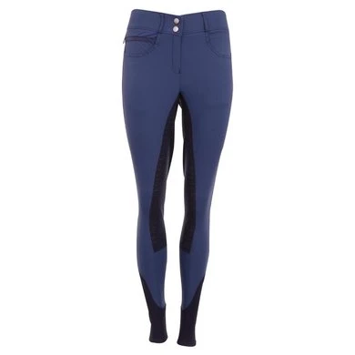 De ‘Stone Taped Breeches FLS’ heeft een chique voorkomen met blauw gekleurde strass steentjes op de voor- en achterzakken. Aan de rechter voorzijde een kleine zak met blinde rits bedekt door blauw sierband. Voorzien van silicone full leather zitvlak voor extra grip.