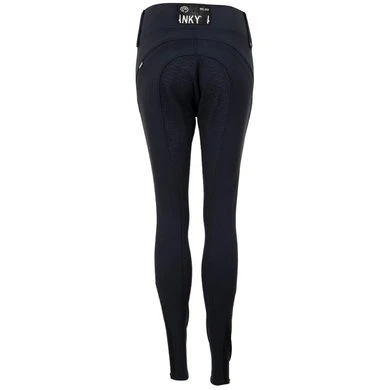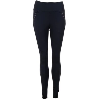 The treggings have two front pockets with concealed zippers trimmed with imitation diamonds. The wide waistband is fully elasticated and has no fastening. The two belt loops at the front have a stud. The front of the treggings is trimmed with silver thread embroidery. The silicone seat provides additional grip and a more stable seat.