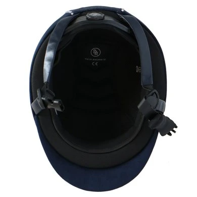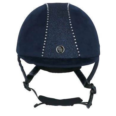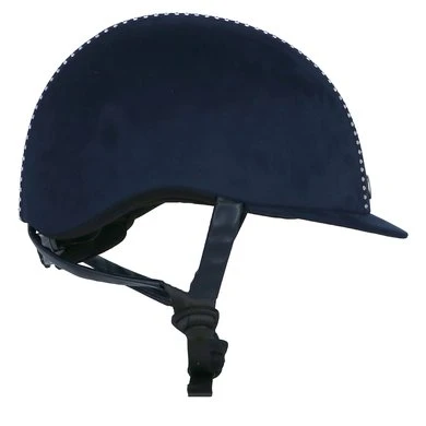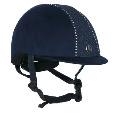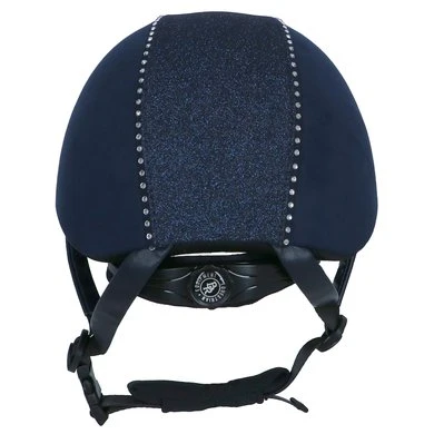Luxe rijhelm met een comfortabele pasvorm en aan de buitenzijde een chique microfiber bekleding. De helm is voorzien van een verticale glitterband afgewerkt met witte imitatiediamanten. De voering van Cooldry gecombineerd met mesh droogt snel en houdt het hoofd koel. De voering is volledig uitneembaar en kan in de wasmachine gewassen worden op 40°C. De helm is uitgerust met een verstelbare kinband afgewerkt met stijlvol synthetisch leder. De kinband is voorzien van een quick release gesp en een zachte kinbeschermer van Cooldry materiaal. De helm voldoet aan de CE VG1 01.040 2014-12 veiligheidsnormering. De hoofdring is in maat verstelbaar door middel van een draaimechanisme aan de achterkant, hierdoor kan een perfecte pasvorm verkregen worden.
