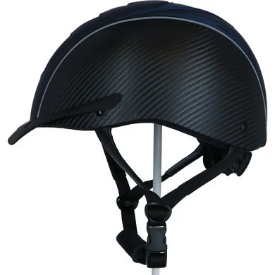 Lichtgewicht BR rijhelm met een comfortabele pasvorm en een aerodynamische vormgeving. De helm is aan beide zijden bekleed met Carbon. De drie fijnmazige, zilverkleurige stalen ventilatieroosters aan de voorzijde en de diverse ventilatieopeningen aan de bovenzijde zorgen voor een uitstekende ventilatie. De Coolmax® voering van het interieur werkt verkoelend en droogt snel. De voering is volledig uitneembaar en kan in de wasmachine gewassen worden op 40°C. De helm is voorzien van een afneembaar helmschild en twee reflecterende biezen over de gehele lengte. De hoofdring is verstelbaar met een draaischijf. De verstelbare 4-punts kinband met quick release gesp is aan de buitenzijde bekleed met kunstleder. De zachte voering om de kinband en de zachte nekbeschermer zorgen voor optimaal comfort. Beide zijn afneembaar met klittenband. De helm voldoet aan de CE VG1 01.040 2014-12 veiligheidsnormering.