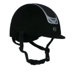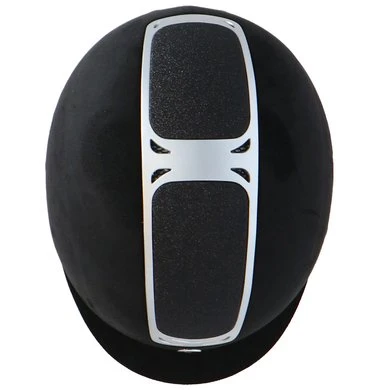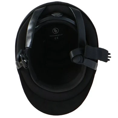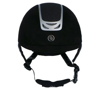 De BR rijhelm Volta microfiber heeft een lichtgewicht schaal van stevig ABS materiaal bekleed met microfiber. De top is verfraaid met glittermateriaal voor een verfijnde uitstraling en wordt omlijst en in het midden onderbroken door een stijlvolle zilverkleurige rand. Deze zilverkleurige rand is voorzien van meerdere ventilatieopeningen die samen met de binnen voering voor een goede ventilatie en vochtregulatie en zorgen. De voering van Cooldry gecombineerd met mesh droogt snel en houdt het hoofd koel. De voering is volledig uitneembaar en kan in de wasmachine gewassen worden op 40°C. De helm is uitgerust met een verstelbare kinband afgewerkt met stijlvol synthetisch leder. De kinband is voorzien van een quick release gesp en een zachte kinbeschermer van Cooldry materiaal. De helm voldoet aan de CE VG1 01.040 2014-12 veiligheidsnormering. De hoofdring is in maat verstelbaar door middel van een draaimechanisme aan de achterkant, hierdoor kan een perfecte pasvorm verkregen worden.