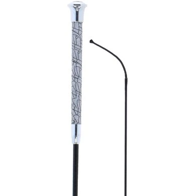 Dressuurzweep met een fiberglas kern en een zwarte stok. De speciale coating zorgt voor een lichte glans en langere levensduur. Ook het klapkoordje (10 cm) is door de verstevigende coating extra duurzaam. De zweep heeft een opvallende handgreep omwikkeld met antislip materiaal en een luxe zilverkleurige knop.
