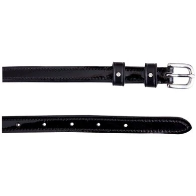 Chique laklederen spoorriemen met twee lederen passanten voorzien van Swarovski® kristallen. De riemen zijn 12 mm breed en 45 cm lang.