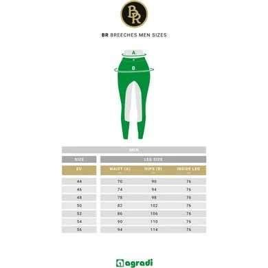 BR rijbroek Marcus heren siliconen zitvlak Deze heren rijbroek met klassieke uitstraling bevat een siliconen zitvlak voor extra grip en een stabielere zit. De rijbroek is voorzien van twee steekzakken aan de voorkant en twee paspelzakken aan de achterkant. De voorzakken kunnen gesloten worden met behulp van een drukknopje aan de binnenkant en ook de achterzakken zijn voorzien van een knoopje.