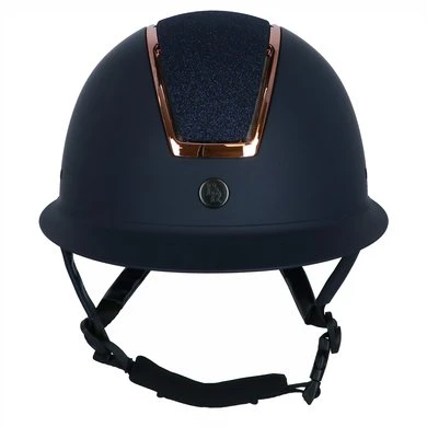De helm is gemaakt van een lichtgewicht schaal van stevig ABS materiaal. De glittertop wordt omringd door een bronskleurige rand met zes langwerpige ventilatieopeningen. De helm is uitgerust met een verstelbare kinband afgewerkt met stijlvol synthetisch leder. De kinband is voorzien van een quick release gesp en een zachte kinbeschermer van ademend materiaal.