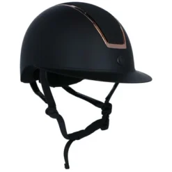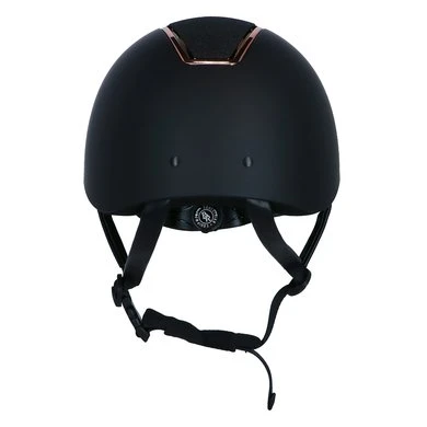 De helm is gemaakt van een lichtgewicht schaal van stevig ABS materiaal. De glittertop wordt omringd door een bronskleurige rand met zes langwerpige ventilatieopeningen. De helm is uitgerust met een verstelbare kinband afgewerkt met stijlvol synthetisch leder. De kinband is voorzien van een quick release gesp en een zachte kinbeschermer van ademend materiaal.