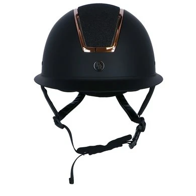 De BR rijhelm Omega Painted Glitter valt op door de glittertop afgebakend met een glanzende bronskleurige rand en de extra grote zonneklep.