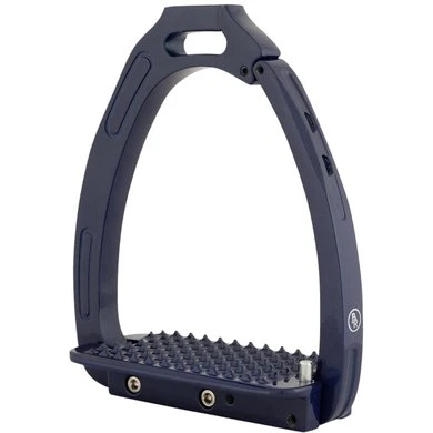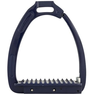 Deze stijgbeugel is gemaakt van gegalvaniseerd aluminium met een poedercoating en is aan de binnenkant versterkt met roestvrijstaal voor extra stevigheid. De beugel is uitgerust met een magnetisch veiligheidsmechanisme. Het gewicht van de ruiter zorgt ervoor dat de beugel opent bij een val. Op deze manier blijft de voet niet in de beugel hangen. Zodra de voet de beugel verlaat, sluit de beugel zich automatisch. De licht gebogen stijgbeugelriemophanging zorgt voor een goede beugelpositie, waardoor de voet in de juiste positie gehouden wordt. Dit geeft de ruiter meer stabiliteit en verbetert de beenligging.