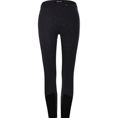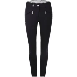 Sportieve rijbroek voor alle doeleinden. Uiterst comfortabel door naadloos kniegedeelte. Met zak voor mobiele telefoon en verfijnde sprankelende glinsterende transferprint. Twee ritszakken aan de voorkant. Reflecterend Cavallo-logo op de dij en Cavagrip-print op de rug. Zijdelings inzetstuk voor een sportieve look. Zachte, hoogelastische zoom, afgebiesd met gestreepte elastische band. Heavy duty 4-way stretchkatoen, gemaakt in Duitsland.