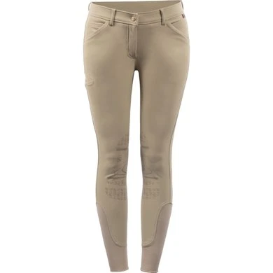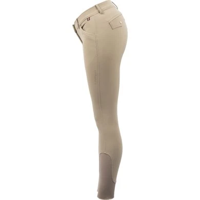 Sportieve, chique rijbroek met gouden details. Twee schuine zakken aan de voorkant. Twee fake klepzakken aan de achterkant. Verborgen zak voor mobiele telefoon aan de zijkant van het rechterdijbeen. Cavallo spijkerkop-artwork onder de tailleband en op de linkerdij. Rekbare beenmanchetten. Knie siliconen grip.
