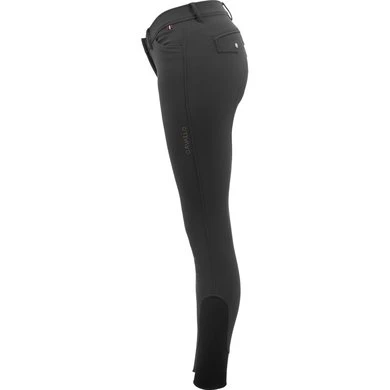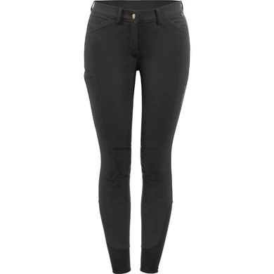 Sportieve, chique rijbroek met gouden details. Twee schuine zakken aan de voorkant. Twee fake klepzakken aan de achterkant. Verborgen zak voor mobiele telefoon aan de zijkant van het rechterdijbeen. Cavallo spijkerkop-artwork onder de tailleband en op de linkerdij. Rekbare beenmanchetten. Knie siliconen grip.
