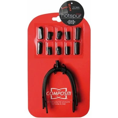 De asymmetrische vorm van het spoor HOTSPUR 5-in-1 verbetert het gevoel van de ruiter en verhoogt de precisie. De HOTSPUR Is heel schokvast en vochtbestendig, ook bij lage temperaturen. Deze kit omvat een paar sporen en 5 verschillende opties: de korte en lange Prince of Wales, de bol, de hamer en het rad.