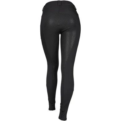 De gebogen tailleband geeft de rijbroek een nog betere pasvorm. De siliconen afwerking zorgt voor een ideale vrijheid van