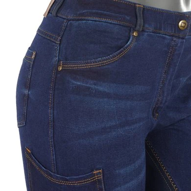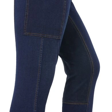 Vintage denim look, volledig suède zitrijbroek met 5 zakken. Bi-stretch denimstof biedt compressie en dekking. Suède riemlussen voor een stijlvolle rij-look. Ritssluiting aan de voorkant. Middelhoge taille, tailleband zonder opening, slim fit.