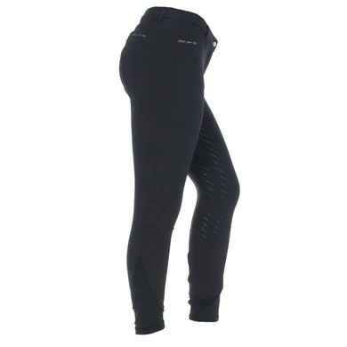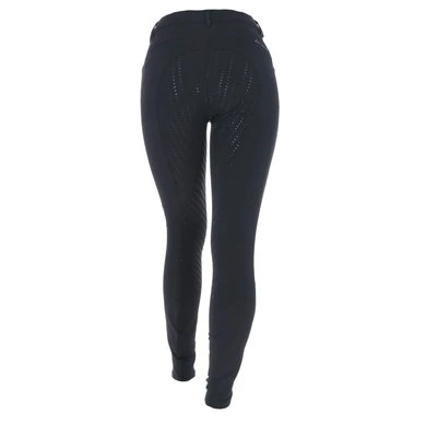 Macy-rijbroek voor dames gemaakt van radilon stof. Met een siliconen fullseat en gaasinzetstukken bij de dij voor een extra comfort en om nog meer te ademen.
