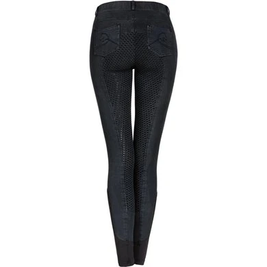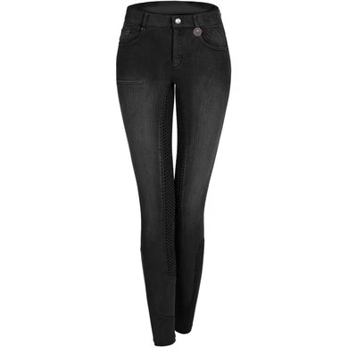– jeansrijbroek met elastische beenmanchet en siliconen zitvlak