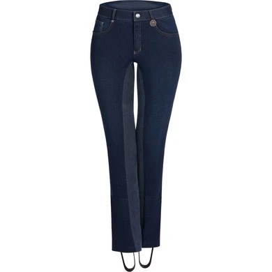 – Jodhpurs met elastische stijgbeugel onderaan uitlopende pijp en synthetisch zitvlak