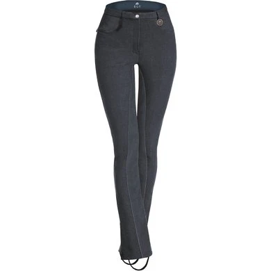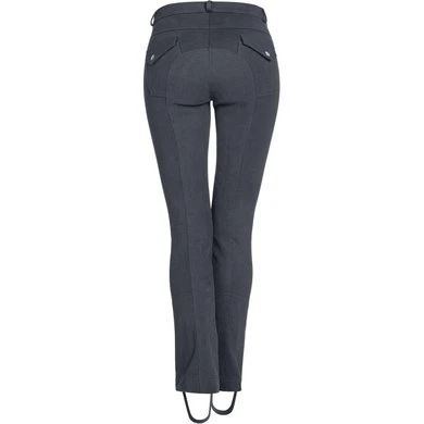 – Rijbroek met elastische stijgbeugel op uitlopende broekspijpen en synthetisch zitvlak