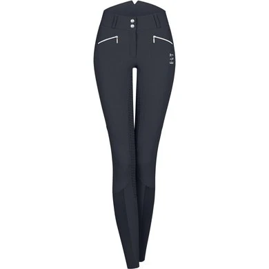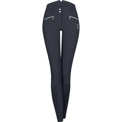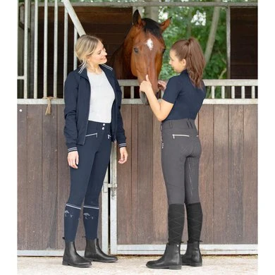 – Hoge taille rijbroek met elastische beenmanchetten en siliconen zitvlak