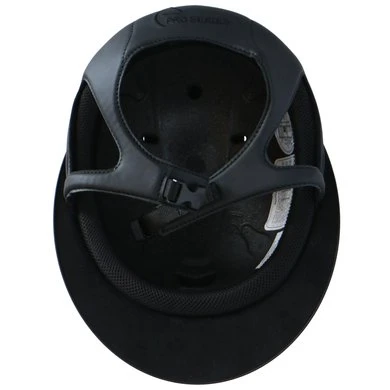 Gewatteerd bevestigingsharnas volledig gevoerd met een suède-achtige stof en voorzien van een verstelbare clipsluiting.