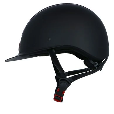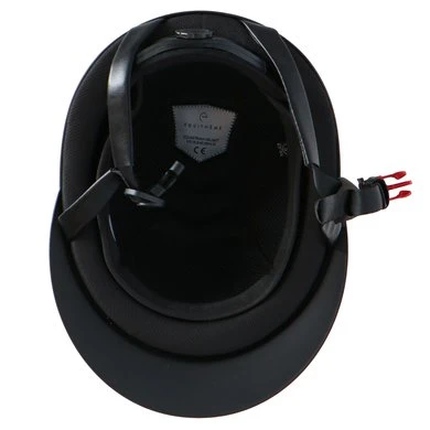 Microfiber 4-punts sluitingssysteem in de acherkant van de nek met een snel te openen klip, uitgerust met kinbescherming. Soepele klep. Gewicht: tussen 430 en 530 g. Cap CE goedgekeurd, volgens de EN1384:2012 norm gewijzigd door coördineerde certificatie VG1 RfU CNB/P/01.040:2014-12. TÜV certificatie.
