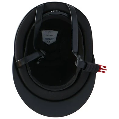 Microfiber 4-punts sluitingssysteem in de acherkant van de nek met een snel te openen klip, uitgerust met kinbescherming. Soepele klep. Gewicht: tussen 430 en 530 g. Cap CE goedgekeurd, volgens de EN1384:2012 norm gewijzigd door coördineerde certificatie VG1 RfU CNB/P/01.040:2014-12. TÜV certificatie.