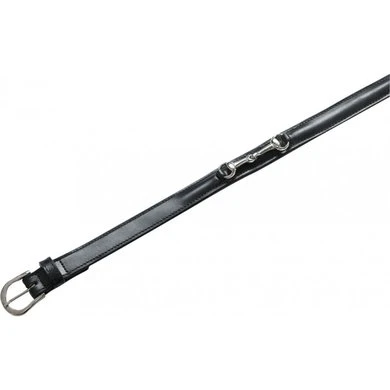 Deze riem zal uw bewegingen niet belemmeren, daar hij van zeer soepel buffelleder is gemaakt. Versierd met drie bustrenzen van gepolijst, massief messing, met bijpassende gesp. De breedte is berekend om door de lussen van een rijbroek te passen.