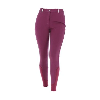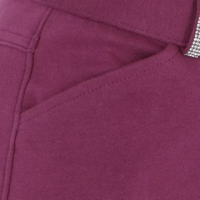 Comfortabele rijbroek met een zeer chique stijl dankzij de tailleband met lussen en nepzakken aan de achterkant versierd met diamanten en knoopsluiting, ook versierd met diamanten. Van stretch katoen, recht model met schuine zakken aan de voorkant. ¾¾ antislipzitting met siliconen inzetstukken voor een vaste beenpositie en onvergelijkbare grip in het zadel, tailleband met lussen en elastaan onderbeen. Samenstelling: 95% katoen, 5% elastaan. Wasbaar in de machine op 30 ° C.
