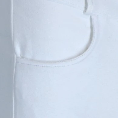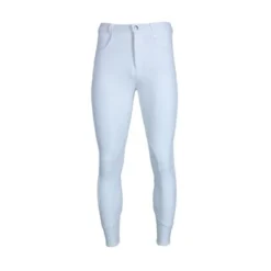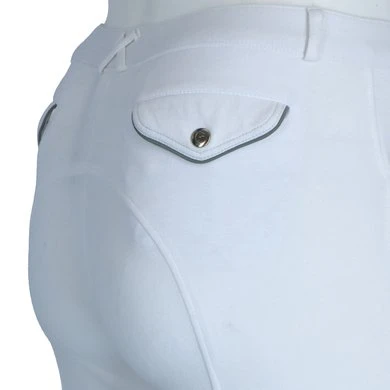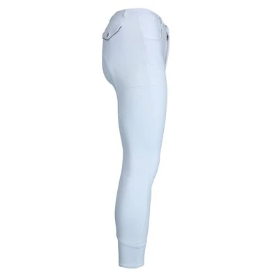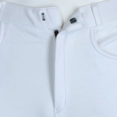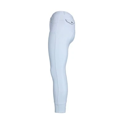 Gebreide rijbroek met elastisch onderbeen van dubbel dik elastaan waardoor ze gemakkelijker aan te trekken zijn en een stevige zit en volledig comfort garanderen. Rechte, beenomsluitende snit met voorgevormde zit en stoffen kniestukken. Westerse zakken aan de voorzijde en klepzakken met drukknoopsluiting aan de achterzijde. Antislipband met lussen, haaksluiting. Opgestikte naden en paspelzakken op de achterzakken in een contrasterende kleur. Samenstelling: 95% katoen, 5% elastaan. Machinewasbaar op 40 ° C.
