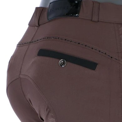 Chique, verfijnde rijbroek met strass-steentjes voor sportieve ruiters. Een sterke rekbare stof die gegarandeerd ondersteuning biedt. Klassieke pasvorm. Voor- en achterzakken afgezet met strass steentjes. Siliconen kniestukken. Onderbeen van elastaan. Samenstelling: 89% polyamide en 11% elastaan. Machinewasbaar op 30 ° C, niet in de droger of strijken.