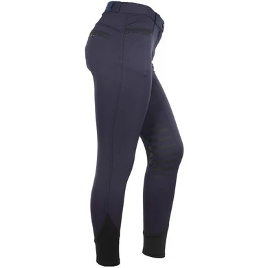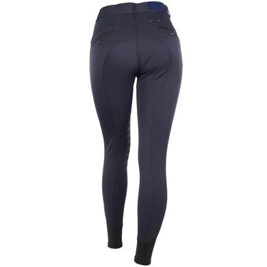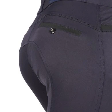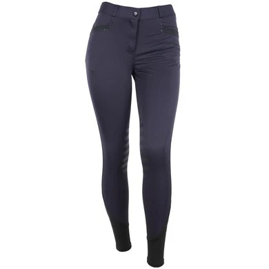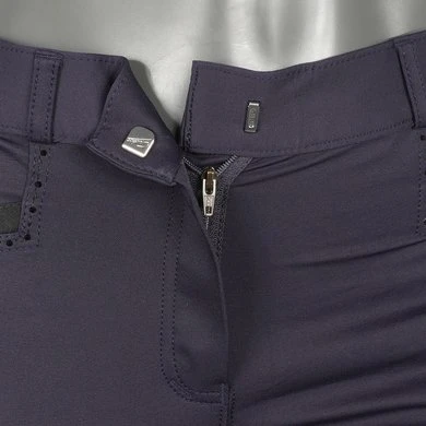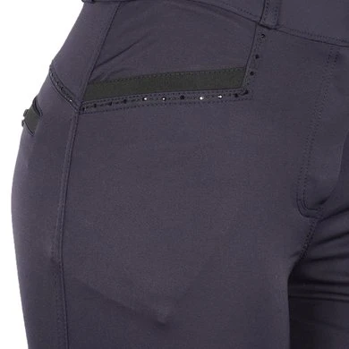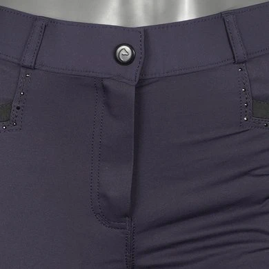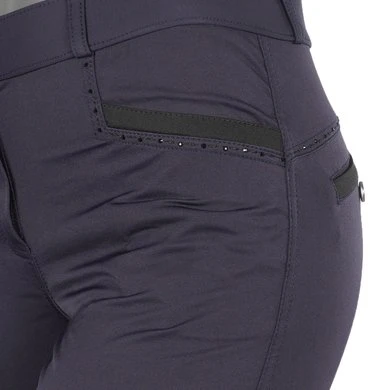 Chique, verfijnde rijbroek met strass-steentjes voor sportieve ruiters. Een sterke rekbare stof die gegarandeerd ondersteuning biedt. Klassieke pasvorm. Voor- en achterzakken afgezet met strass steentjes. Siliconen kniestukken. Onderbeen van elastaan. Samenstelling: 89% polyamide en 11% elastaan. Machinewasbaar op 30 ° C, niet in de droger of strijken.