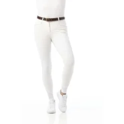 Chique, verfijnde rijbroek met strass-steentjes voor sportieve ruiters. Een sterke rekbare stof die gegarandeerd ondersteuning biedt. Klassieke pasvorm. Voor- en achterzakken afgezet met strass steentjes. Siliconen kniestukken. Onderbeen van elastaan. Samenstelling: 89% polyamide en 11% elastaan. Machinewasbaar op 30 ° C, niet in de droger of strijken.