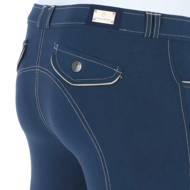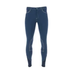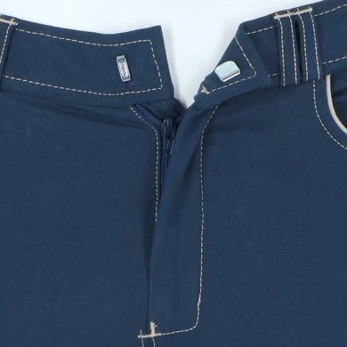 Het hele jaar door rijbroek, ademend en elastisch van 60% katoen, 33% polyamide en 7% elastan. Contrasterende stiksels op contourpoten en gevormde zit- en stoffen kniestukken. Jeanszakken aan de voorkant en faux zakken met drukknopen aan de achterkant, allemaal versierd met contrasterende biesjes. Elastische antislip taille met dubbele riemlussen. Brede riemlus met badge aan de achterkant. Rekbaar onderbeen in dubbel dik elastiek om ze gemakkelijk aan te trekken en ervoor te zorgen dat ze goed blijven zitten zonder ongemak. Wasbaar in de machine op 30 ° C.