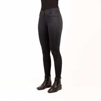 Deze rijbroek voor dames combineert een klassieke buitenkant met moderne extra’s. De snit van de Airflow FullGrip is een standaard pasvorm met een lage tailleband. Deze rijbroek is functioneel met volledige siliconen zitvlak voor optimale grip in het zadel en elastische broekspijpen met inzetstukken van gaas voor goede ventilatie van de benen. De zilveren ritsen van de paspelzakken aan de voorkant zijn aantrekkelijk decoratief alsook de knoop van de broek met een discrete “euro-star” -versiering. Het bijzonder lichte en elastische materiaal gemaakt van 91% nylon met een mix van 9% polyurethaan zorgt voor uitstekende draagcomfort.