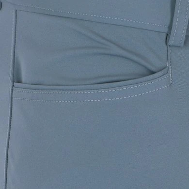 Aan de voorkant, links en rechts, zitten twee enigszins diagonale zakken met flappen en kleine decoratieve naden aan de buitenste randen. De zakken met flap aan de achterkant hebben klassieke knopen. Een klein, contrastkleurig logo zit links op de buitenkant, boven de knie.