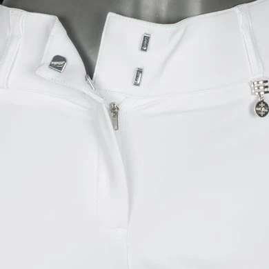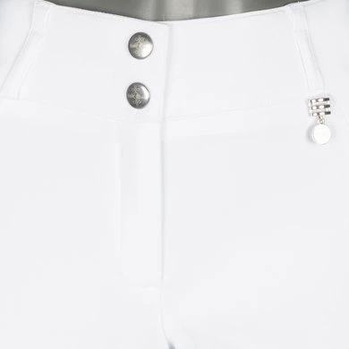 • Hoge, nauwsluitende taille met riemlussen