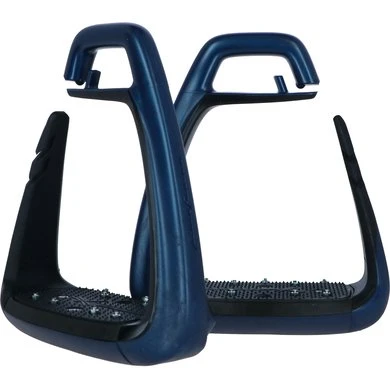 Verbeterde schokabsorptie. Vermindert de belasting van elke stijgbeugel met tweederde en verlicht de druk op de gewrichten van de ruiter en de rug van het paard, dankzij de nieuwe geometrie van de tak. 3 keer meer demping dan een traditionele stijgbeugel.