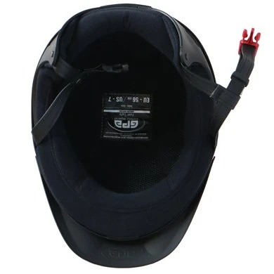 De klassieke kinband is vervangen door een hybride systeem. Uniek voor GPA. Het achterste deel van de kinriem, een kruising tussen het twin lock-systeem en de traditionele kinriem, is een composiet van thermoplastische hars en glasvezelweefsel. De met synthetisch leer beklede nylon riemen worden vastgemaakt met een tweedelige gesp. Dankzij het stijve deel aan de achterkant dat de schaal verlengt, garandeert de hybride kinband een betere bescherming en een betere grip van de helm op het hoofd. De meer betaalbare prijs en het ontwerp zullen ook conventionele rijders overtuigen.