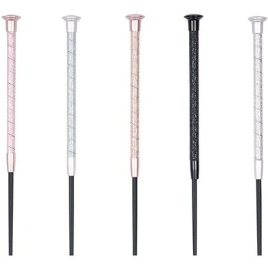 Luxe dressuurzweep met een gedecoreerd gekleurd handvat en met matte details. Lengte is gemeten exclusief de slag van 10cm.