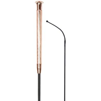 Zwarte zweep met chic gel-handvat. Nylon gevlochten steel en slag. Beschikbaar in de kleuren: – goud – zilver. Lengte is excl. slag 10cm.