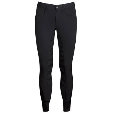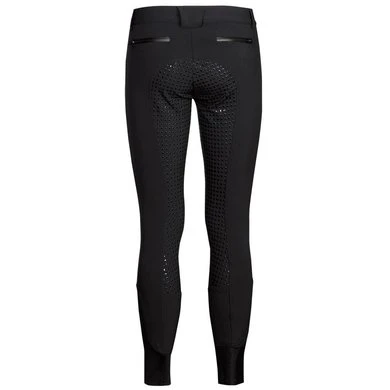 Rijbroek met steekzakken, twee kontzakken met ritssluiting, rondgenaaid zitvlak met siliconen print, lycra flexlegs