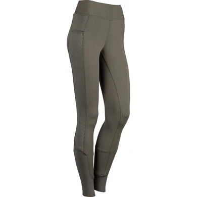 Paardrijlegging met twee steekzakken aan de zijkant, een print over de gehele lengte van het dijbeen, een Denici Cavalli print op de linkerzak, een allover siliconen print op het zitvlak en met een elastische inzet rond de enkels. Materiaal: 73% Nylon 27% Elastan
