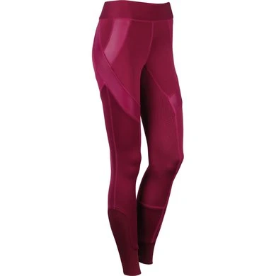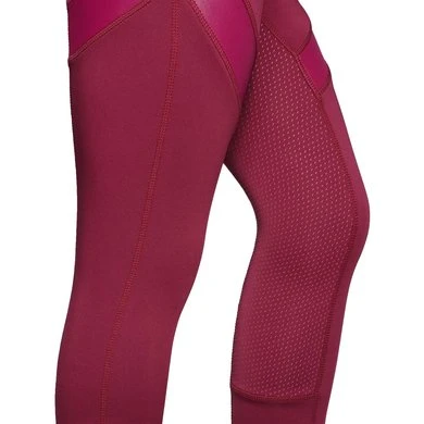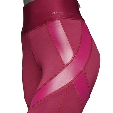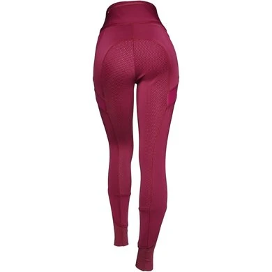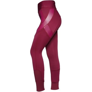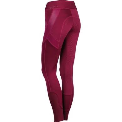 Paardrijlegging met shiny finish details, rondgenaaid zitvlak met siliconen print voor extra grip in het zadel en een elastische inzet rond de enkels voor extra comfort in de rijlaarzen, zakje met rits in de achterkant van de tailleband.