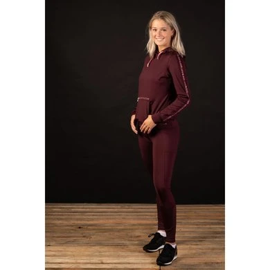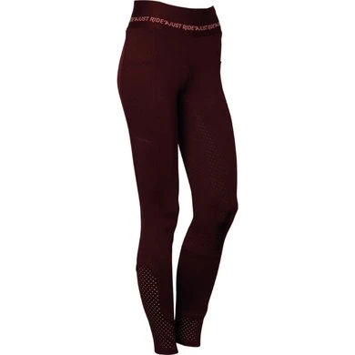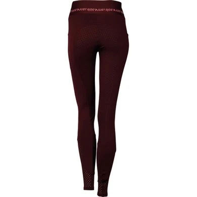 Sportieve paardrijlegging met twee grote zakken waar eventueele een telefoon in kan, met lasercut, rondgenaaid zitvlak voorzien van een siliconen print voor extra grip in het zadel, leuke roze glitter print op de tailleband, flexlegs met lasercut