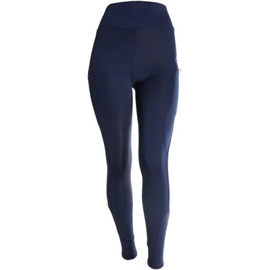 Sportieve paardrijlegging met twee zakken met ritssluitingen, rondgenaaid zitvlak voorzien van een siliconen print voor extra grip in het zadel en flexlegs voor extra comfort in de rijlaarzen 90% polyester/10% elastan