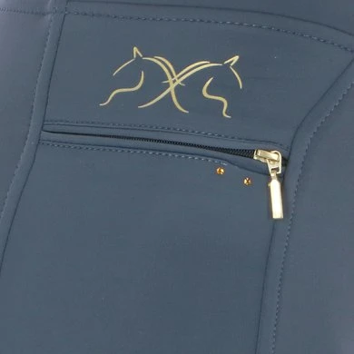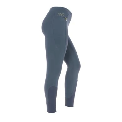 Hippe paardrijlegging voorzien van rondgenaaid zitvlak met een siliconen print voor extra grip in het zadel, twee zakje op de zijkant met ritssluiting, lycra flexlegs